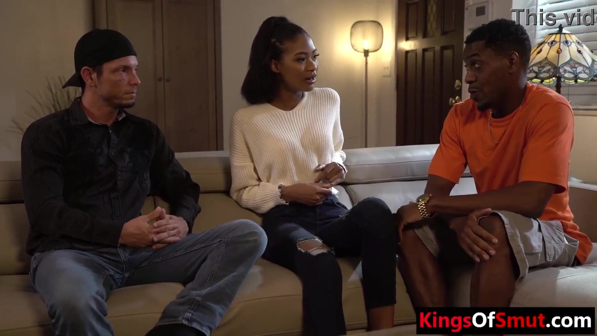 Ebony step daughter has to fuck step dad's friend to repay his debt