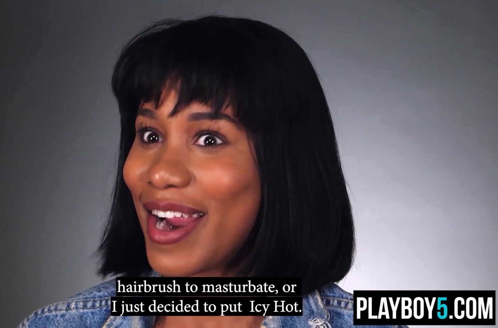 Black MILF Jenna Fox solo masturbation session with an orgasm